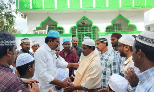 DNB News - తెలంగాణ / : నేడు మండల పరిధిలోని నర్సింహాపురం గ్రామంలో ఉన్న. మసీదులో గ్రామానికి చెందిన ముస్లిం మత పెద్దలు ముస్లిం సోదరులు యువత తో. కలిసి ప్రార్థనలు చేసిన గ్రామ సర్పంచ్ డాక్టర్ వేమూరి సత్యనారాయణ. తదుపరి సత్యనారాయణ మాట్లాడుతూ. గడచిన నెల రోజులుగా ఎంతో భక్తిశ్రద్ధలతో నియమ నిబంధనలతో. ఉపవాస దీక్షలు చేపట్టి నేడు. రంజాన్ పర్వదినం సందర్భంగా. సామూహిక ఉపవాస దీక్షలు విరమించే సందర్భంగా. ముస్లిం సోదరులకు రంజాన్ పండగ శుభాకాంక్షలు తెలిపి. ఆ అల్లా దయతో అందరూ సుభిక్షంగా సురక్షితంగా ఉండాలని. ప్రస్తుతం భారతదేశంలో. ఇతర దేశాలైన ఇరాన్ ఇజ్రాయిల్. దేశాలు యుద్ధం కొనసాగిస్తున్నందువల్ల ఆ ప్రభావం మన దేశంపై పడి నిత్యవసర వస్తువులు. ముఖ్యంగా గ్యాస్ డీజిల్ పెట్రోల్ కొరత ఏర్పడి. ఎంతోమంది ఉపాధికి దూరమవుతున్నారని అనేక రకాలుగా ఇబ్బందులు పడుతున్నారని. ఏదైనా సమస్యలో వస్తే శాంతియుతంగా సామరస్య పూర్వకంగా శాంతి చర్చలు జరపాలని. ఆ అల్లా దయతో యుద్ధం ఆగిపోవాలని. ఆకాంక్షించారు. ఈ పండగలు పర్వదినాలు మతసామరస్యానికి ప్రతీకని. మన మతాలను పూజించుకోవడం ఇతర మతాలను గౌరవించాలని. ప్రతి ఒక్కరూ స్నేహపూర్వకంగా మెలగాలని అన్నారు. అలాగే. నేటి వరకు ముస్లింలకు ఎలాంటి రాజకీయ పదవులు తమ గ్రామంలో లేవని. ఇటీవల జరిగిన గ్రామపంచాయతీ ఎన్నికలలో మొట్టమొదటిసారిగా వార్డు సభ్యుడిగా ముస్లిం సోదరుడు. ఎన్నిక కావడం సంతోషమని. ఈ సందర్భంగా ఒకటో వార్డు నుంచి వార్డు సభ్యుడిగా ఎన్నికైన షేక్ అజీజ్ మియ ను. సర్పంచి సన్మానించాడు. తదుపరి ముస్లింల సంక్షేమానికి. ఇతర మౌలిక సదుపాయాలకు తమ వంతు కృషి చేస్తానని హామీ ఇచ్చారు. ఇంకా ఈ కార్యక్రమంలో. ముస్లిం మత పెద్దలు . ఇమాం . షేక్ ఖలీల్. సదర్ ఇలియాస్ నాగుల్ .నాగుల్ మీరా మన్సూర్ . మదార్సా. బాబా . హుస్సేన్ . పాషా . బాబు . చాంద్. నజీర్ . లతీఫ్. జాని. అధిక సంఖ్యలో ముస్లీం యువకులు పాల్గొన్నారు