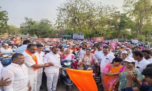 DNB News - తెలంగాణ / : దశాబ్దాల నిరీక్షణకు స్వస్తి పలుకుతూ , నారీ శక్తివందన్ అధినియం ద్వారా ఆడబిడ్డలకు మోదీ అపురూప కానుక అందించి మోదీ ప్రభుత్వం నవ భారతాన్ని నిర్మిస్తుందని బిజెపి మహిళా మోర్చా అధ్యక్షురాలు చొప్పరి జయశ్రీ అన్నారు. ఏప్రిల్ 16 న పార్లమెంట్ ప్రత్యేక సమావేశంలో చట్ట సభల్లో మహిళలకు రిజర్వేషన్ కల్పించే నారీ శక్తి వందన్ అధినియం బిల్లును ప్రవేశపెడుతున్న శుభ సందర్భాన్ని పురస్కరించుకొని బిజెపి మహిళా మోర్చా జిల్లా శాఖ ఆధ్వర్యంలో బుధవారం రోజున కరీంనగర్లోనీ ఎస్ఆర్ఆర్ కళాశాల నుండి పట్టణంలోని పలు ప్రాంతాల మీదుగా మార్క్ ఫెడ్ వరకు స్కూటీ ర్యాలీ నిర్వహించారు. ఈ కార్యక్రమానికి ముఖ్య అతిథులుగా హాజరైన జిల్లా అధ్యక్షులుగంగాడి కృష్ణారెడ్డి , నగర మేయర్ కోలగని శ్రీనివాస్, డిప్యూటీ మేయర్ సునీల్ రావు జెండా ఊపి వాహన ర్యాలీని ప్రారంభించారు. ఈ సందర్భంగా చొప్పరి జయశ్రీ మాట్లాడుతూ మహిళలకు చట్టసభలలో 33 శాతం రిజర్వేషన్ కల నెరవేరే సమయం వచ్చిందన్నారు. దశాబ్దాలు దేశాన్ని ఏలిన ఏ పార్టీ కూడా మహిళల సంక్షేమం , అభివృద్ధి కోసం ఆలోచన చేయలేదన్నారు. కేంద్రంలో అధికారంలోకి వచ్చిన మోడీ ప్రభుత్వం మహిళల సంక్షేమం అభివృద్ధి కోసం కట్టుబడి పనిచేస్తుందని తెలిపారు. అలాగే మహిళలకు చట్టసభల్లో ప్రాతినిధ్యం కల్పించడానికి, 33 శాతం రిజర్వేషన్లు అందించే చారిత్రక కార్యక్రమానికి శ్రీకారం చుట్టారని తెలిపారు. చారిత్రాక నారి శక్తి వందన్ అధినియం బిల్లుతో మహిళలకు దేశ ప్రధాని పెద్ద గిఫ్ట్ ఇవ్వబోతున్నారన్నారు. ఈ కార్యక్రమంలో కన్వీనర్ దేశ శిల్ప, నిర్మల రెడ్డి, కోలగని స్వర్ణ, వరాల జ్యోతి, సాధవేని లావణ్య, కర్రె పద్మ, శ్వేత , ప్రభావతి, గాజిరమ, పొన్నం లక్ష్మి, నాంపల్లి రేణుక, పెద్దపల్లి శ్రీలేఖ, ఎన్నం లక్ష్మి, సరస్వతి, సుమ రమణారెడ్డి,సాయిని మల్లేశం, గుజ్జ శ్రీనివాసరావు, శశిధర్, బీజేవైఎం సంపత్, గుగ్గిళ్ళ రమేష్, సత్యనారాయణ రెడ్డి, సోమిరెడ్డి వేణు,, సునీత, స్వప్న, లావణ్య రెడ్డి, చైతన్య,, నరేడ్ల ప్రవీణ్ చంద్ర,, బండారి వేణు, చంద్రిక, వివిధ డివిజన్ మహిళలు పాల్గొన్నారు.