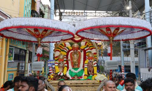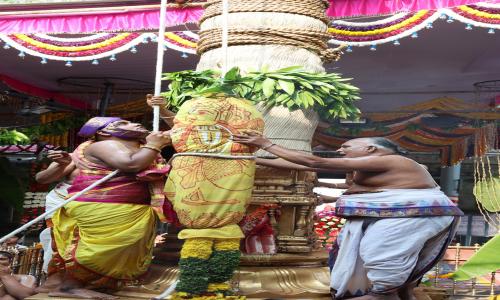 DNB News - తెలంగాణ / : ధ్వజారోహణంతో ప్రారంభమైన శ్రీ కోదండరాముని బ్రహ్మోత్సవాల వైభవం - రామ నామ స్మరణతో మార్మోగిన ఆలయం తిరుపతి శ్రీ కోదండరామస్వామివారి ఆలయంలో మంగళవారం ఉదయం ధ్వజారోహణంతో వార్షిక బ్రహ్మోత్సవాలు వైభవంగా ప్రారంభమయ్యాయి. భక్తుల రామ నామ స్మరణతో ఆలయం మార్మోగింది. కంకణబట్టార్ శ్రీ భరత్ కుమార్ దీక్షితులు ఆధ్వర్యంలో ఉదయం 8 నుండి 9 గంటల మధ్య మేషలగ్నంలో ధ్వజారోహణ ఘట్టాన్ని శాస్త్రోక్తంగా నిర్వహించారు. ఇందులో గరుత్మంతుని చిత్రంతో కూడిన ధ్వజపటానికి అర్చకులు ప్రత్యేక పూజలు నిర్వహించారు. అనంతరం అర్చకుల వేదమంత్రోచ్ఛారణలు, భక్తుల గోవిందనామస్మరణ, రామనామ జపముల మధ్య ధ్వజపటాన్ని ధ్వజస్తంభంపైకి అధిష్టింపచేశారు. సకల దేవతలను బ్రహ్మోత్సవాలకు ఆహ్వానించడంతోపాటు సమాజశ్రేయస్సుకు, వంశాభివృద్ధికి ధ్వజారోహణం దోహదపడుతుందని అర్చకులు తెలిపారు. అంతకుముందు ఉదయం 6.30 నుండి 8 గంటల వరకు శ్రీ సీతాలక్ష్మణ సమేత శ్రీకోదండరామస్వామివారు, ధ్వజపటము, చక్రతాళ్వారులకు తిరువీధి ఉత్సవం నిర్వహించారు. అనంతరం ఉదయం 9 నుండి 9.30 గంటల వరకు ఆస్థానం నిర్వహించారు. అనంతరం ఉదయం 11 నుండి 12.45 గంటల వరకు శ్రీ సీతా లక్ష్మణ సమేత శ్రీ కోదండరామస్వామి ఉత్సవర్లకు శాస్త్రోక్తంగా స్నపన తిరుమంజనం నిర్వహించారు. ఇందులో పాలు, పెరుగు, తేనె, కొబ్బరినీళ్లు, పసుపు, చందనంలతో అభిషేకం చేశారు. కాగా, రాత్రి 7 నుండి 8.30 గంటల వరకు పెద్దశేష వాహన సేవ జరుగనుంది. ఈ కార్యక్రమంలో శ్రీశ్రీశ్రీ పెద్దజీయర్స్వామి, డెప్యూటీ ఈవో శ్రీమతి నాగరత్న, టెంపుల్ ఇన్స్పెక్టర్ శ్రీ సురేష్, ఆలయ అర్చకులు, విశేష సంఖ్యలో భక్తులు పాల్గొన్నారు.